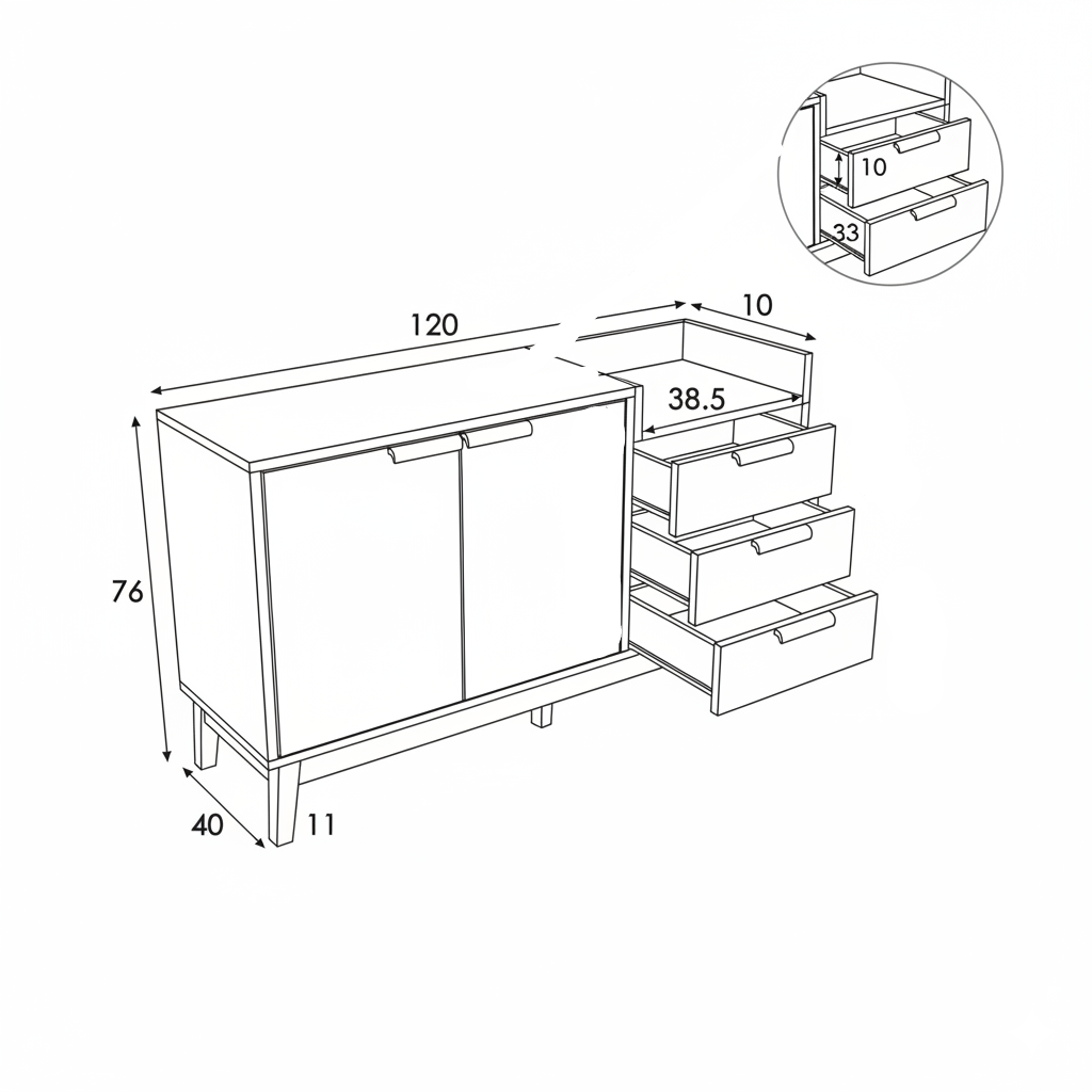 Buffet en chêne 120 cm avec plateau effet marbre et tiroirs
