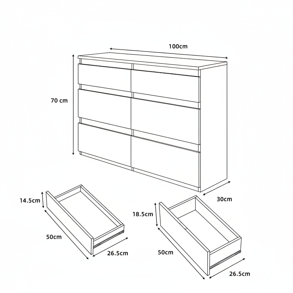 Avec sa teinte bois clair et son design épuré, cette commode 6 tiroirs apporte une touche de chaleur et d’harmonie à votre intérieur. Son allure contemporaine et ses finitions soignées en font un meuble à la fois pratique et décoratif.