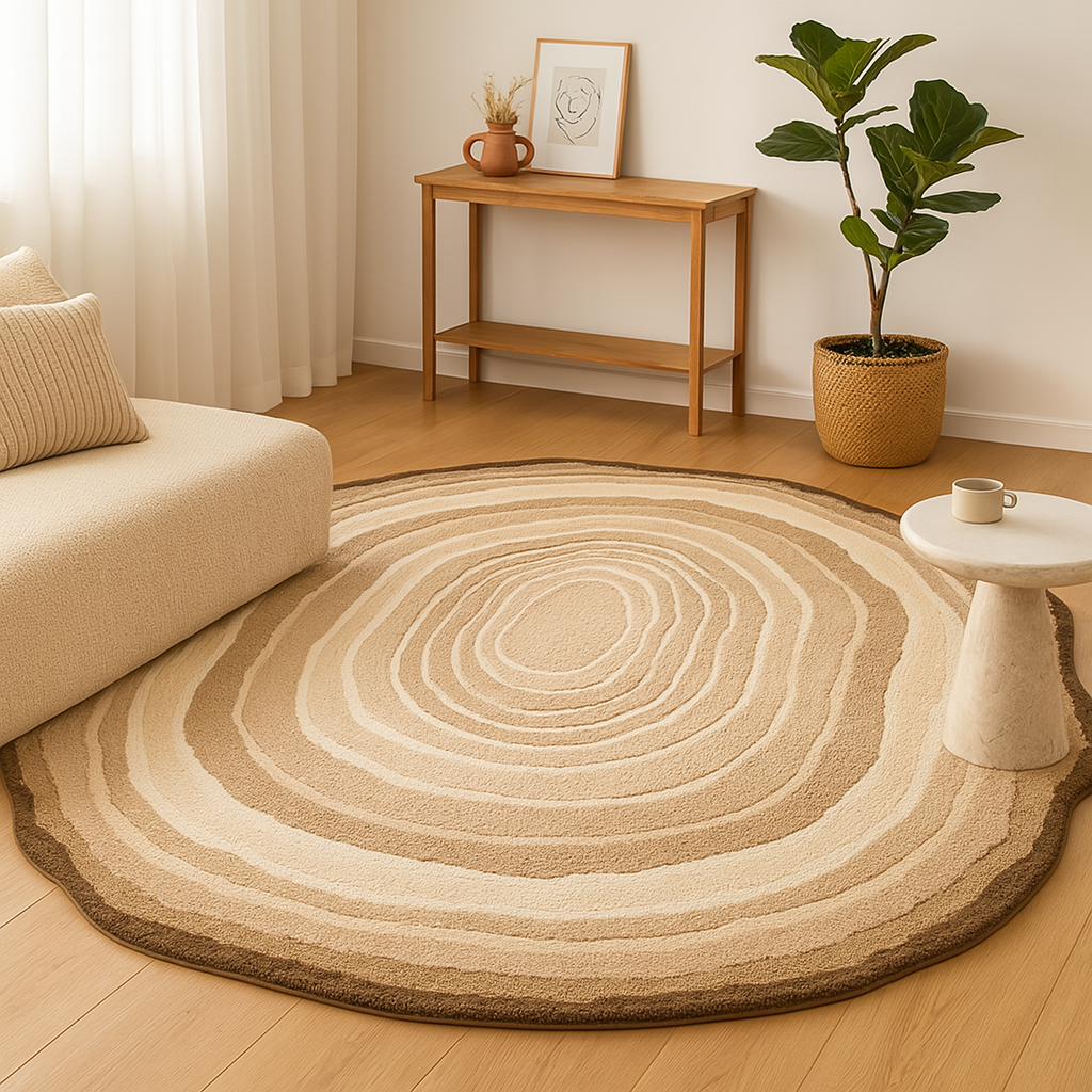 Un tapis épais au motif irrégulier inspiré des formes naturelles. Son style rétro et sa douceur en font un allié parfait pour les salons chaleureux et contemporains.