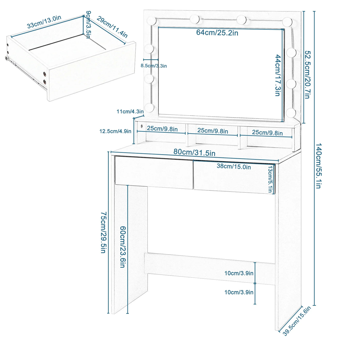 Coiffeuse blanche miroir LED moderne