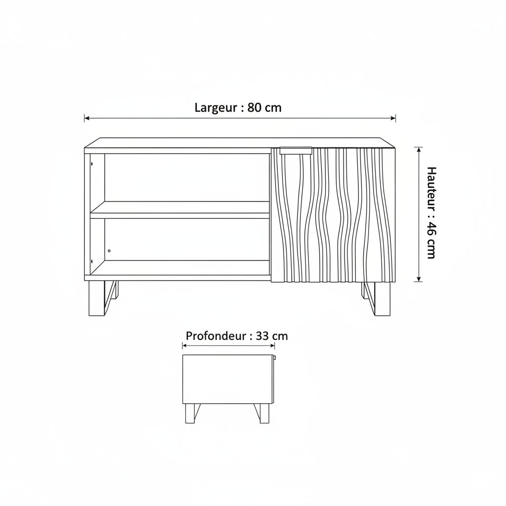 Avec ses lignes rustiques et sa façade au motif ondulé, ce meuble TV devient une véritable pièce maîtresse. Alliant bois massif et métal, il offre chaleur, solidité et caractère à votre salon.