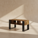 Table basse bois et métal au style industriel avec compartiments de rangement pratiques et design robuste pour un salon moderne.